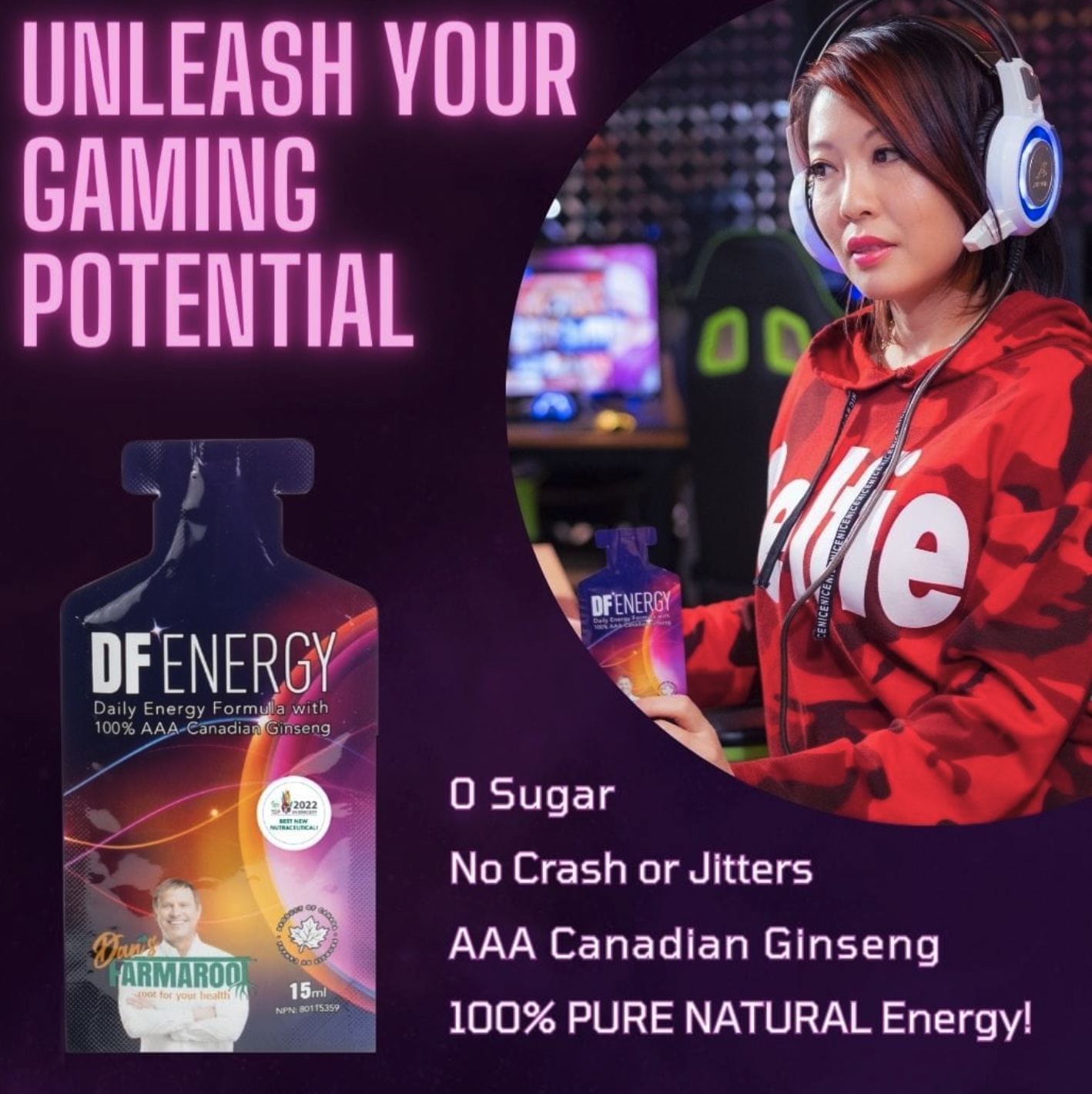 Our dedication to quality starts at the source with Canadian-grown ginseng, ensuring the highest potency and purity in every product. Leveraging cutting-edge AI technology, our flagship, award-winning product, DFENERGY, sets a new benchmark in the health and wellness industry.